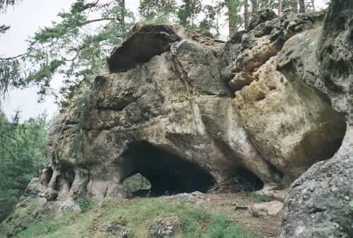 Nachází se ve skalách jižního svahu Jeleního vrchu, 3,5 km od obce Hradčany, 5 km od Mimoně